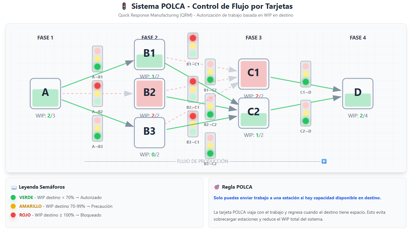 Nuestra solución basada en el regulador de flujo POLCA y la metodología QRM regula la producción de forma inteligente, asegurando que cada operación tenga los recursos justos en el momento adecuado. Menos caos, más control.